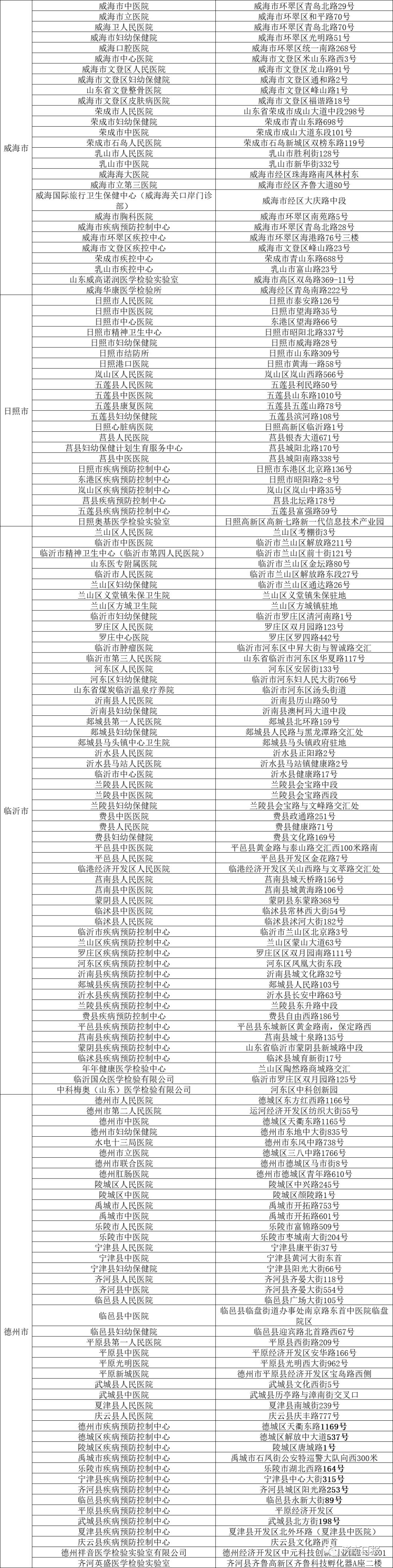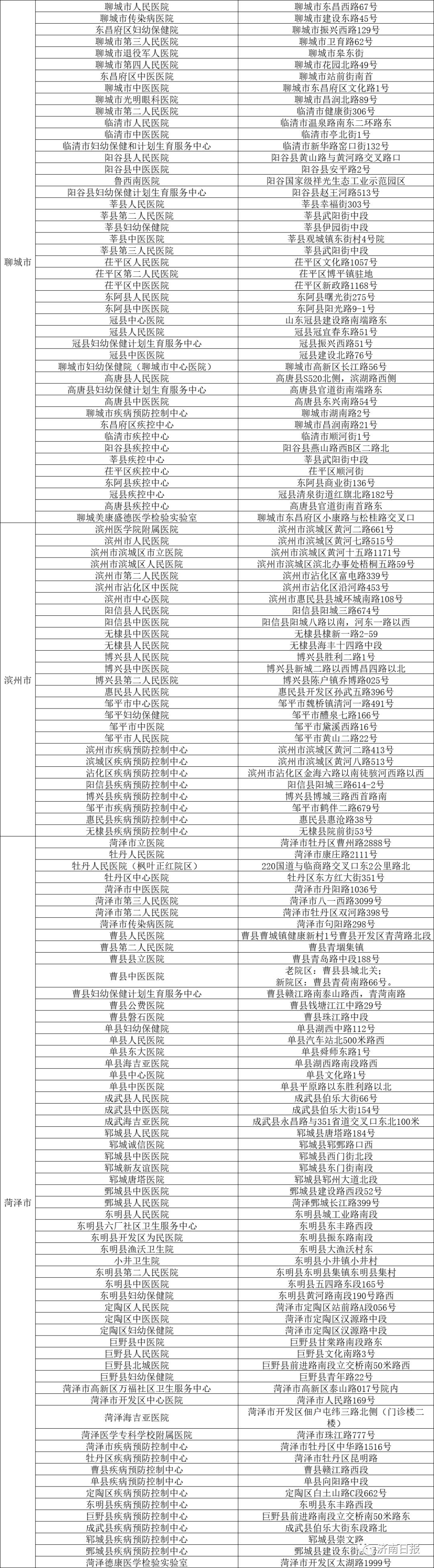 全名单!山东16市核酸检测点公布