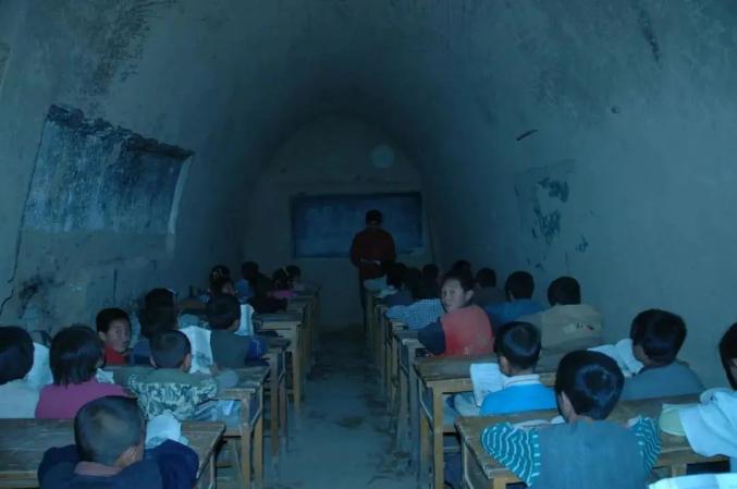 △厦门大学第六届研支团成员在窑洞中的教室上课