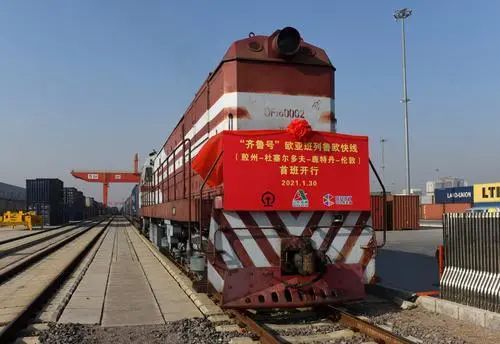 30日,“齐鲁号”欧亚班列鲁欧快线(胶州-杜塞尔多夫-鹿特丹-伦敦)首班顺利开行。