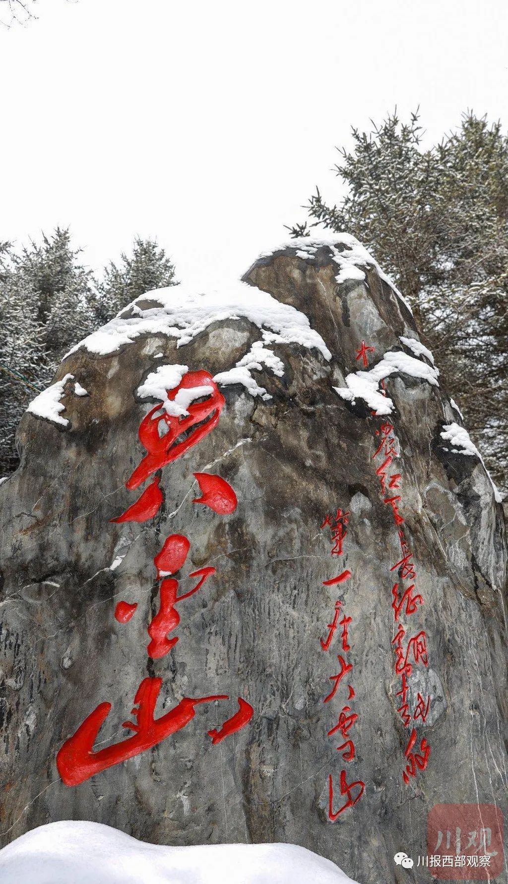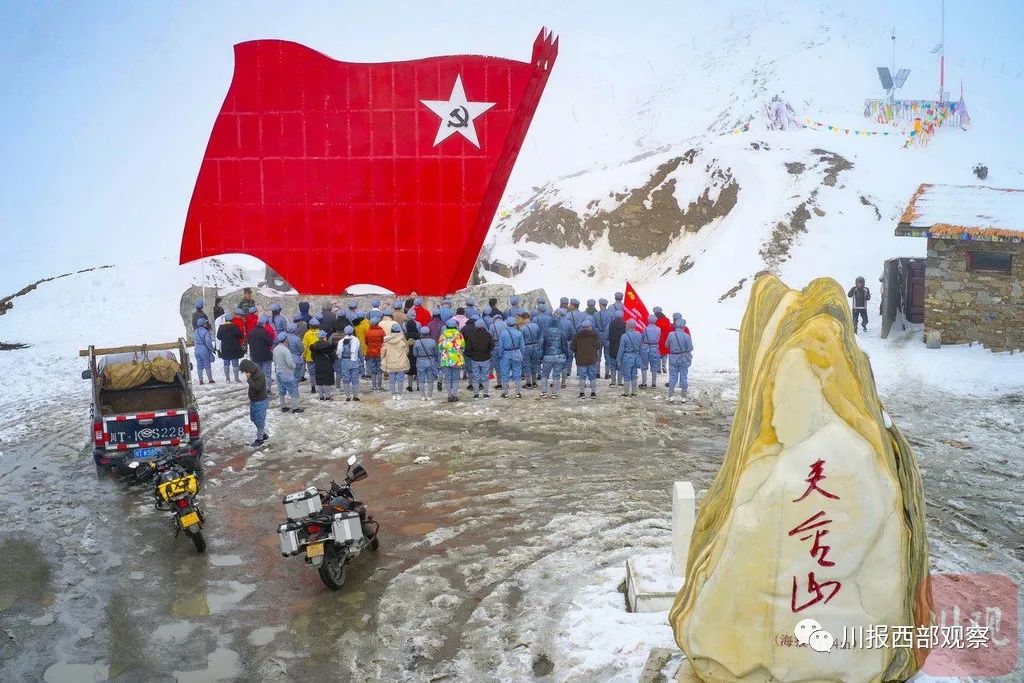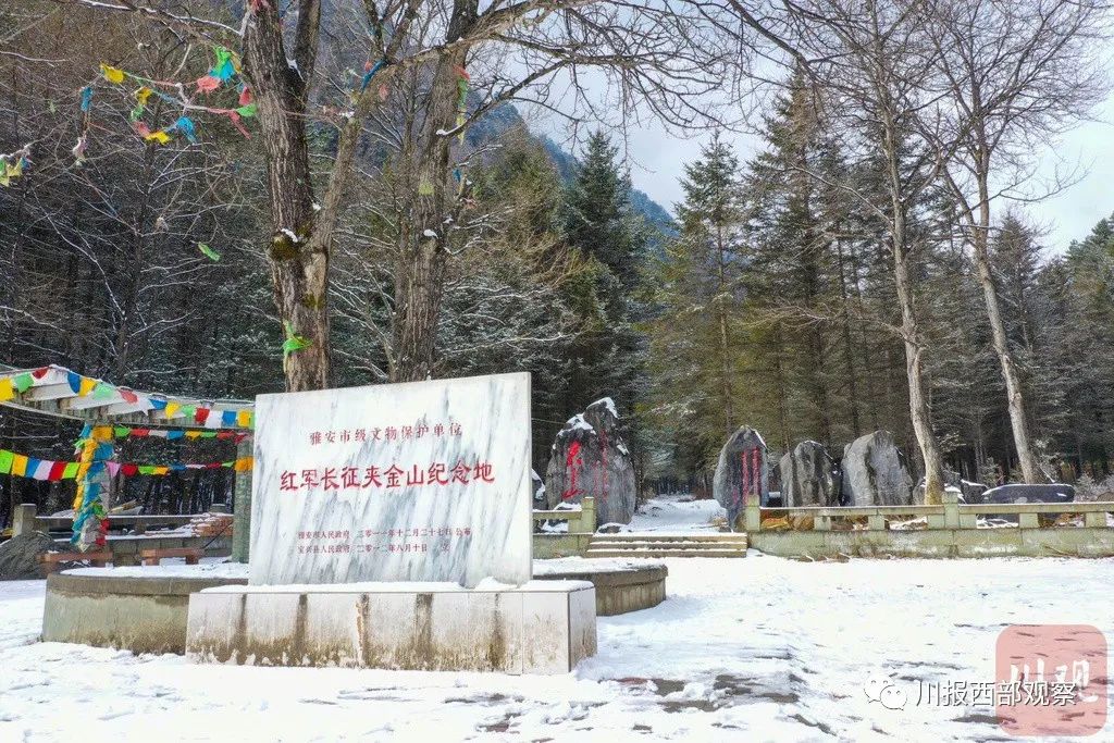 车辆沿着蜿蜒的山路前行,不一会儿,眼前已是白雪皑皑。60多公里路程走了近2个小时,终于来到位于夹金山下的藏寨——硗碛。再往前,就是红军长征翻越夹金山纪念地。