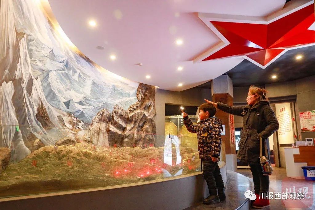 在红军长征翻越夹金山纪念馆里,一组场景画再现了当地人对红军的支援:运粮食,配合红军作战;架设桥梁,抢修栈道;赶制军需品,发动青年参加红军……