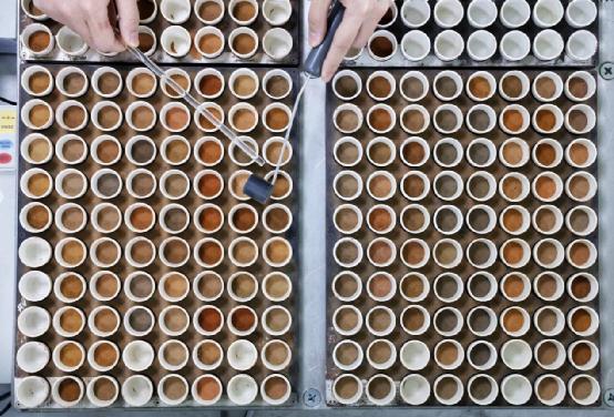 ▲在史丹利的蚯蚓测土实验室,技术人员正在称量需要检测的土壤样品。蚯蚓实验室的名字源于土壤中蚯蚓的数量往往被作为评定土壤肥力的重要因素之一。(小南 摄)