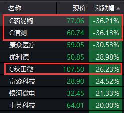 2日,C字头全线回调,截至收盘,次新股指数下跌超1%。其中,C药易购、C信测跌超36%、C秋田微跌逾26%。