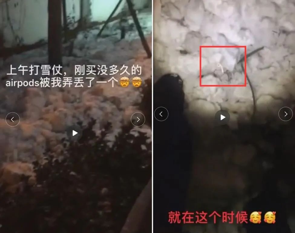发生这种倒霉事的当然不止他一个,有位国内的小伙子也把AirPods掉在了雪地上。