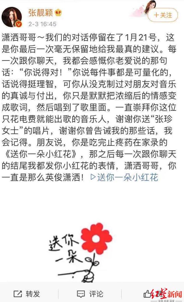 张靓颖还在微博中提到,“你是吃完止疼药在家录的《送你一朵小红花》”。