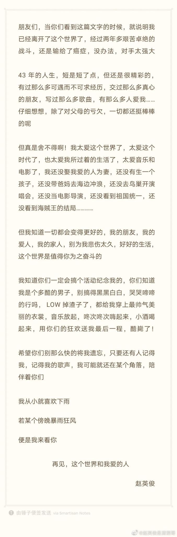 原标题:《赵英俊遗书曝光!看完泪目了》