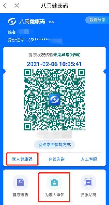 为了照顾老人孩子等特殊群体,闽政通APP还开设了为家人扫码功能。