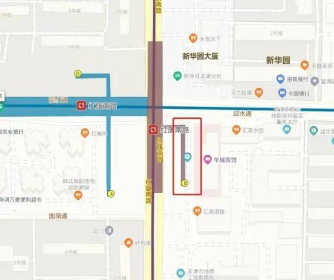 2月8日,天津地铁6号线红旗南路站B出入口(位置如图红框所示)将正式对外开通运营。