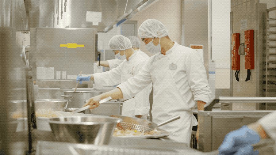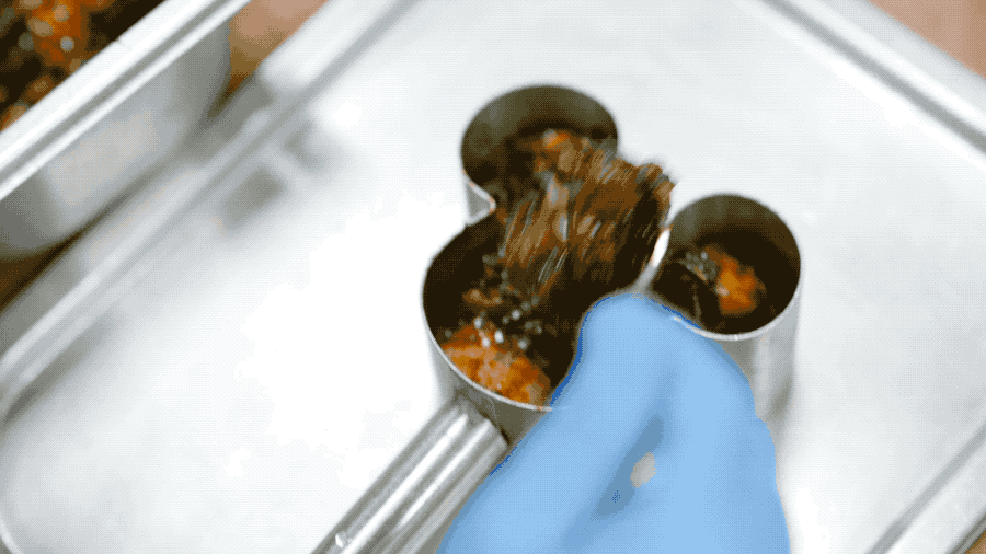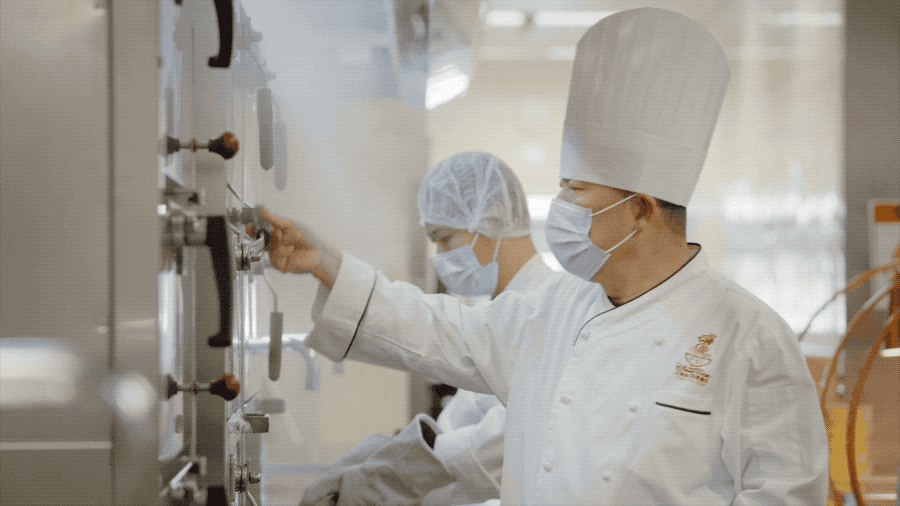乐园里超过70%以上的产品都是在中央厨房里烹饪的。从原材料的清洗,初加工,制作到最后打包,发货,整个过程我们一条路到底,避免交叉污染。