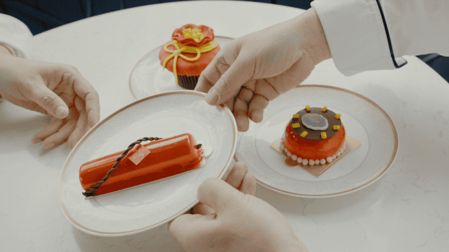 我们的小伙伴根据中国过年的习俗,做了很多充满新年寓意的新春甜点,有祝你高升的竹子,喜气洋洋的鞭炮,福气满溢的福袋和元宝。