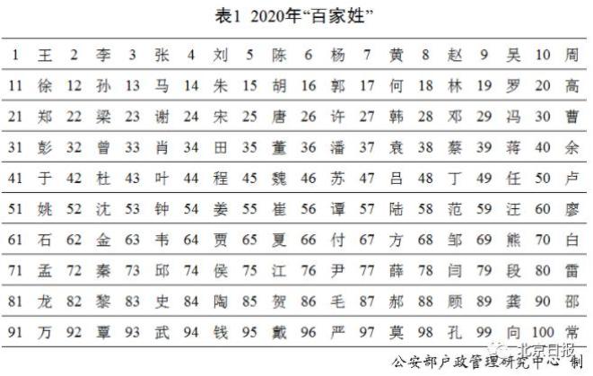 原标题:《2020年百家姓排名,你的姓排第几?中国人姓名中的10个秘密→》