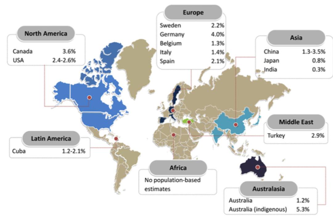 图1 基于人群研究预计的世界不同地区的心衰患病率
