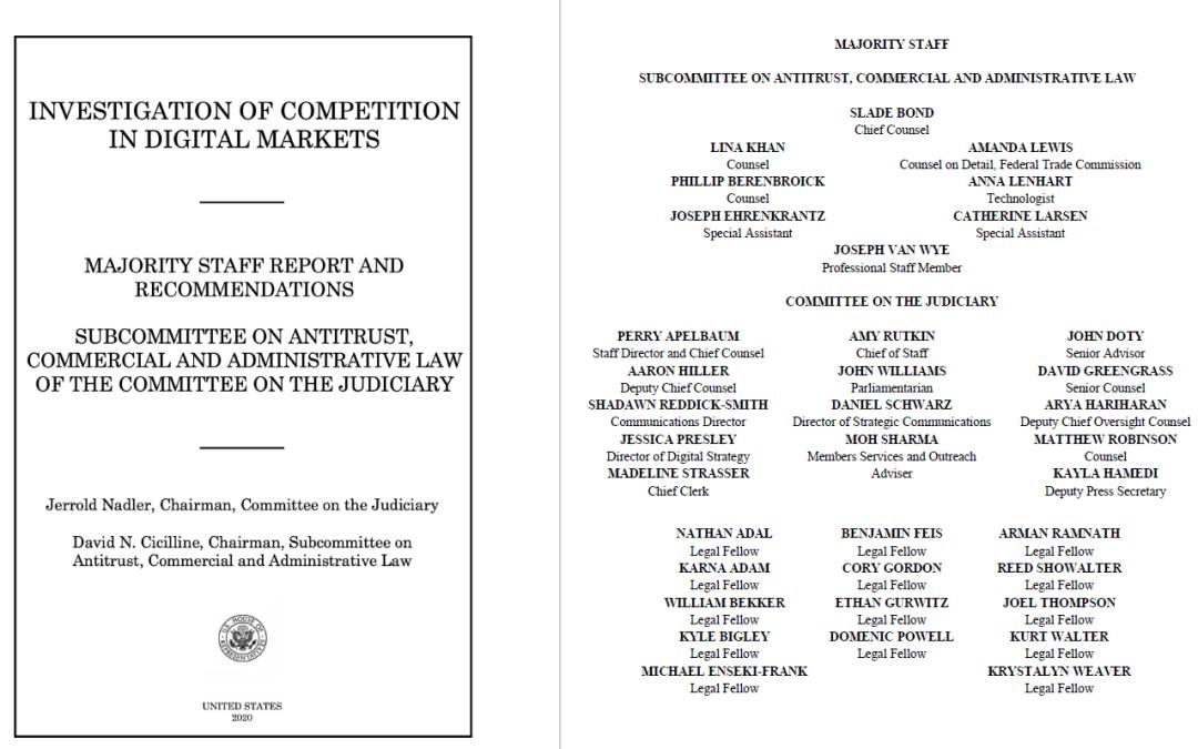 此外,小组委员会对现有的反托拉斯法,竞争政策及当前的执法行为进行了审查,以评估其是否足以解决数字市场(digital market)中的市场支配地位和反竞争行为。