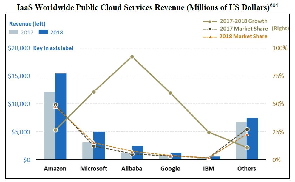 最后,亚马逊网络服务(AWS)为许多与Amazon竞争的企业提供了关键的云基础设施服务。这也造成了潜在的利益冲突。在这种情况下,云客户被迫考虑持续使用竞争对手Amazon提供的服务,而不是为其业务选择最佳技术。