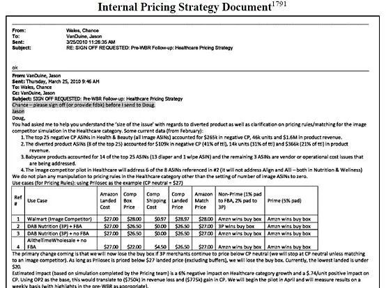 正如一位前第三方卖家所解释的那样,“鉴于Amazon的巨大影响力,我们认为供应商不会对于亚马逊破坏MAP原则的行为进行实质上的回应,比如威胁暂停在Amazon平台销售等。” Amazon的内部文件显示其并不担心不遵守大多数供应商政策会带来任何后果。