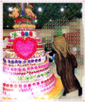 蛋糕上面顶着财神庙,中西合璧,路过时拜一拜,祈福消灾。
