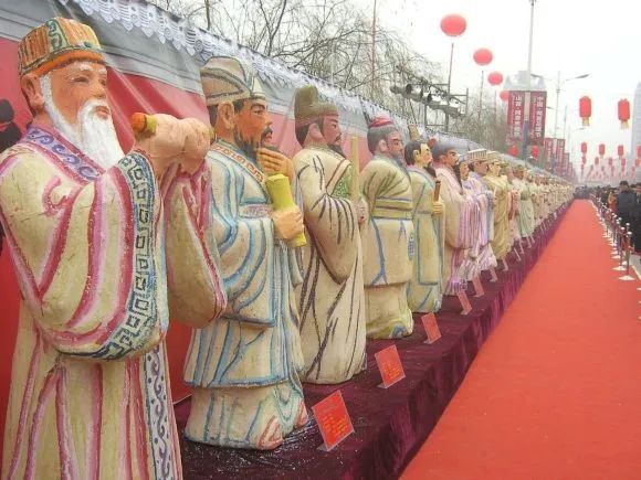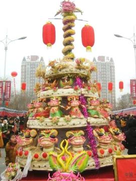 山西裴柏村的村民利用农耕之余,出动全村男女老少,用2吨面粉制作了113尊宰相将军面塑,平均身高1米8。