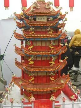 比武汉黄鹤楼更喜庆的花馍黄鹤楼,每条柱子、每个飞檐上都盘着金龙。用橡皮泥和彩陶都做不出这质感。
