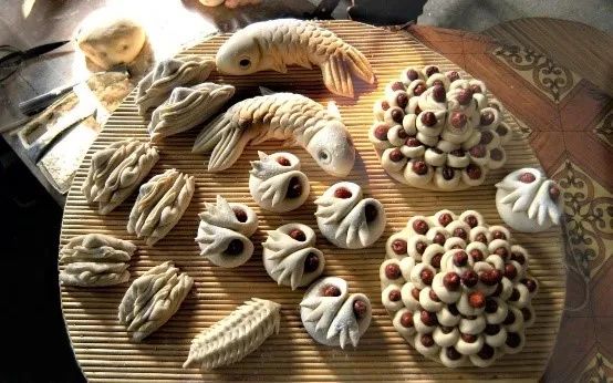 早在汉代的时候就有关于面塑技术的文字记载。隋唐时期,人们把面食塑成动物、花鸟、瓜果等形状进行祭祀供奉,祈求风调雨顺、合家平安。