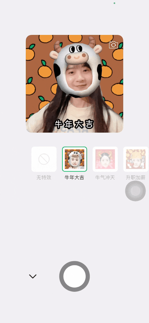除了定制红包封面,你还可以定制一个自拍表情包,带上特效,萌萌哒去拜年咯。