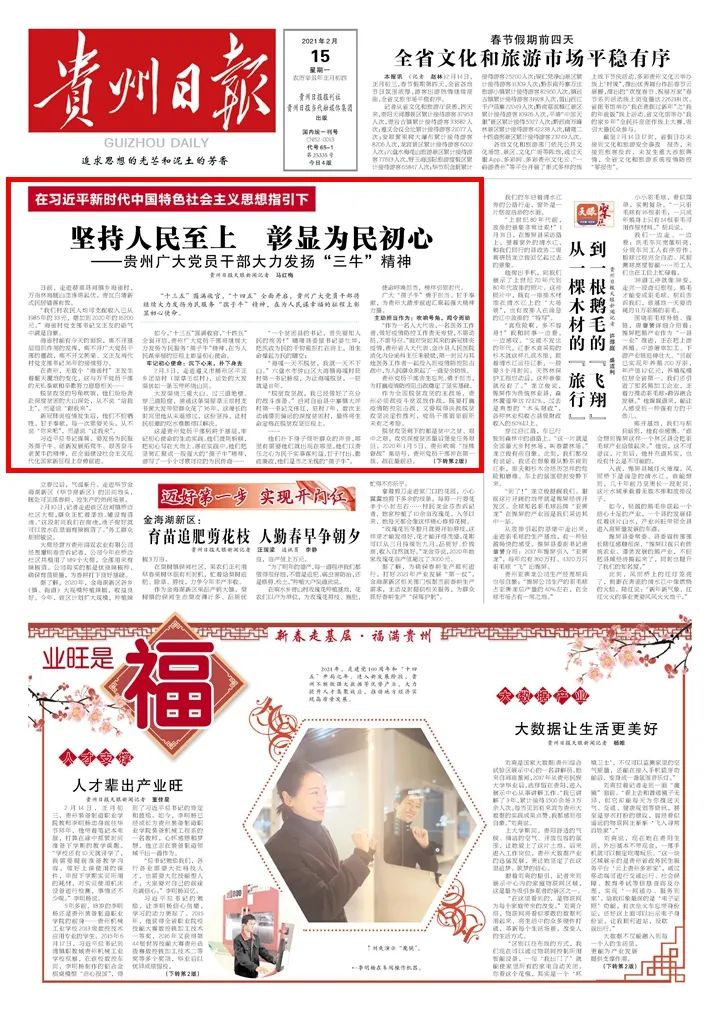 如今,“十三五”圆满收官,“十四五”全面开启,贵州广大党员干部将继续大力发扬为民服务“孺子牛”精神,在为人民谋幸福的征程上彰显初心使命。