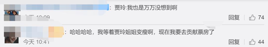 据悉,贾玲此前接受采访时表示过:票房过10亿要跳女团舞,过20亿染头发,超过30亿就瘦成一道闪电。