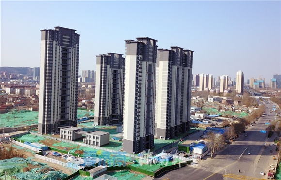 2月18日,在烟台路东段南侧的张刘片区拆迁改造现场,这里原来低矮的平房棚户区已经建起了四栋高层回迁安置楼,施工也进入了周边道路建设和绿化阶段。