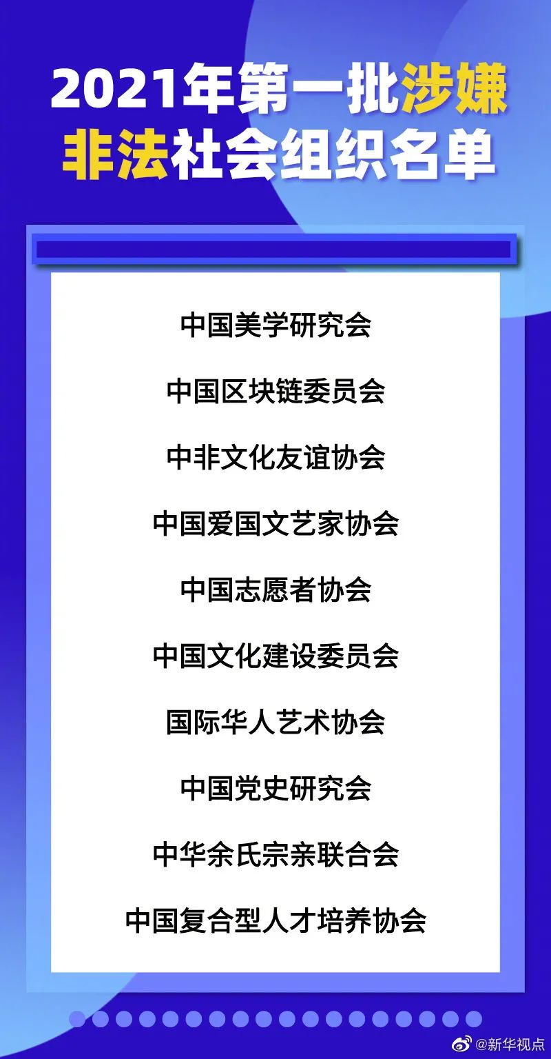 3)民政部公布2021年第一批涉嫌非法社会组织名单,并提醒公众谨防上当受骗,社会各界可以登录“中国社会组织政务服务平台”(http://www.chinanpo.gov.cn/)的“投诉举报”栏目,提供涉嫌非法社会组织的活动线索。