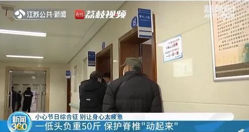 7)春节期间,江苏省中西医结合医院门诊接诊量排名第一的是骨伤科。医生表示,患者们大多是因为坐姿、睡姿有误或长期低头玩手机等导致脊椎错位,才引起各处疼痛。另外,医生提醒,长期低头玩手机相当于脖子负重50斤,大家平时注意多左右扭动腰部,放松脊柱。