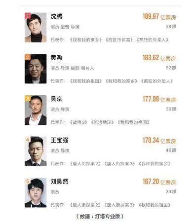 1)据灯塔专业版数据显示,17日,沈腾以185亿票房超越黄渤,成为中国影史票房最高的演员。截至发稿前,这一数字已达到190亿,或将成“200亿先生”。