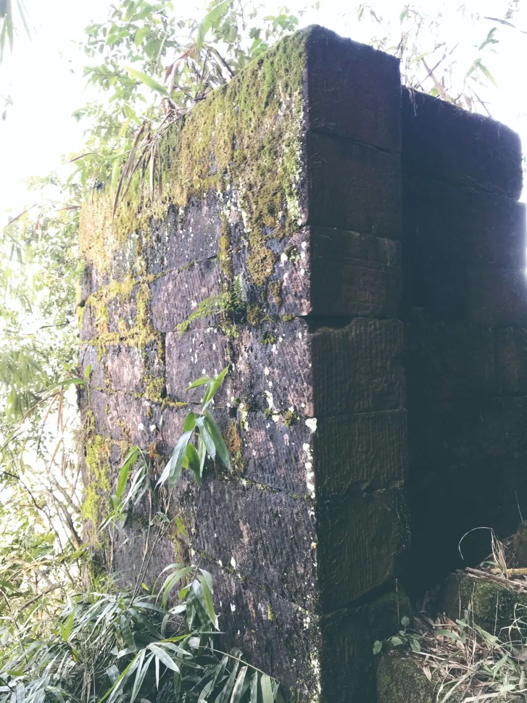 “这些就是宋城的墙。”约半个小时的路程后,张少榕指着一段被遮掩在竹林里的石壁说,石壁的纹路是人字纹,这是宋城墙的典型特征。年代久远,石壁表面已长满了青苔,用手指将青苔抠掉一小块,依稀可见斜着的石纹。再往上二三十米,倒在路边的一块石碑吸引了记者注意,走近一看,上面写着“永昌门”。