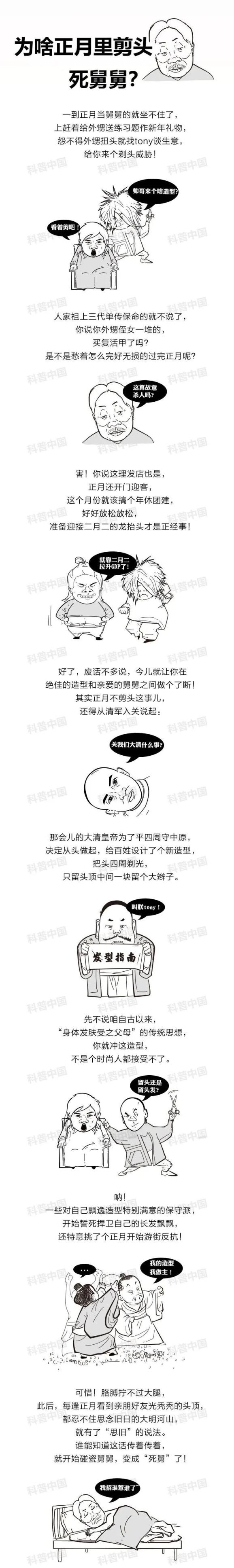 这么看来,“正月不能理发”和舅舅根本没什么关系。但既然已经成为深入人心的习俗,我们虽然不必信为法条,有时却也不得不为了家庭和睦而有所变通,免得闹出“家庭纠纷”。