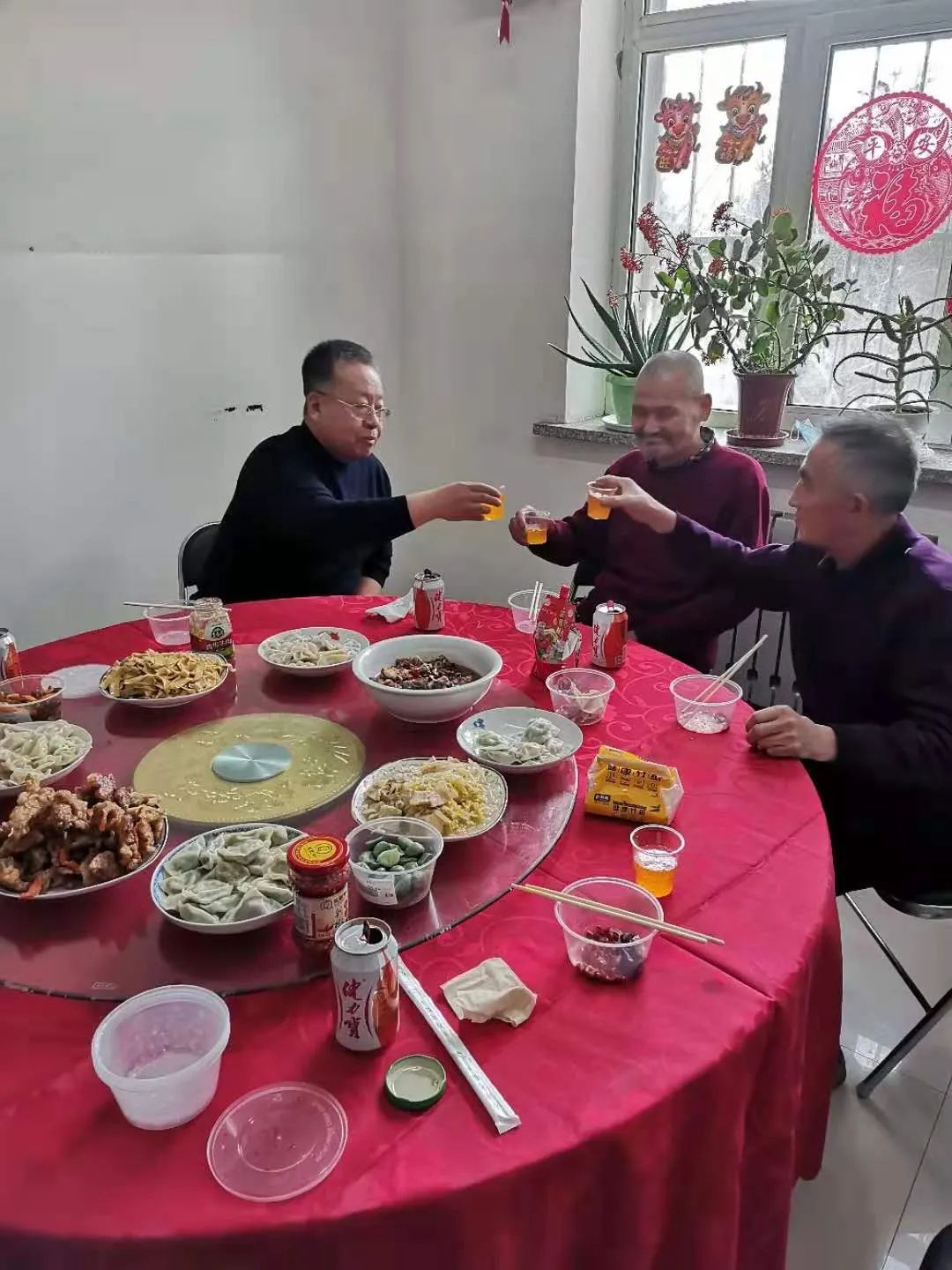 王大爷告诉记者,他一直在外打工,因自身年龄和新冠肺炎疫情影响导致无家可归,眼看大年三十就要到了,自己只能住在一个待拆迁的房子里,没水没电没暖气。“救助站的人一直对我都很关心,早早把我接到站里过年。这顿年夜饭还这么丰盛,有鱼有肉,还有健力宝,真是太感谢了。”目前,工作人员已经与王大爷家乡政府取得联系,过了春节再帮老人回家。