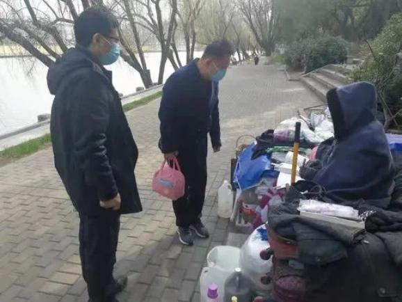 面对倔强的刘大爷,工作人员送上包括食品、衣物、宣传卡册、口罩等物资的年夜饭大礼包,并再三嘱咐他要注意身体健康和生活安全,有特殊情况第一时间跟救助管理站或者110联系。