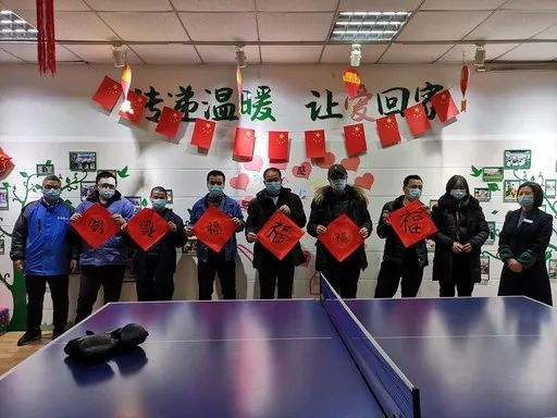 除夕夜,多数岗位已休假,站内工作人员却格外忙碌。当天,在站滞留共有6名受助人员,为了使他们感受节日气氛和家的温暖,站内管理区布置得温馨又喜庆,室内挂上灯笼、贴上对联,天花板和玻璃窗挂满了福字条幅,墙上以及电子屏写满了春节贺语,并安排了打乒乓球、写福字、包饺子、看春晚等文体活动。