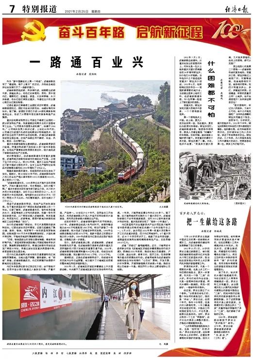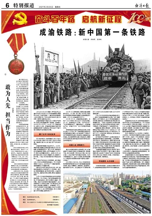 成渝铁路是新中国成立后,中国共产党领导人民自力更生修建的第一条铁路,1950年6月15日开工,1952年7月1日建成通车,全程505公里。成渝铁路的建设为新中国铁路建设积累了宝贵经验,同时也拉开了新中国大规模经济建设的序幕。