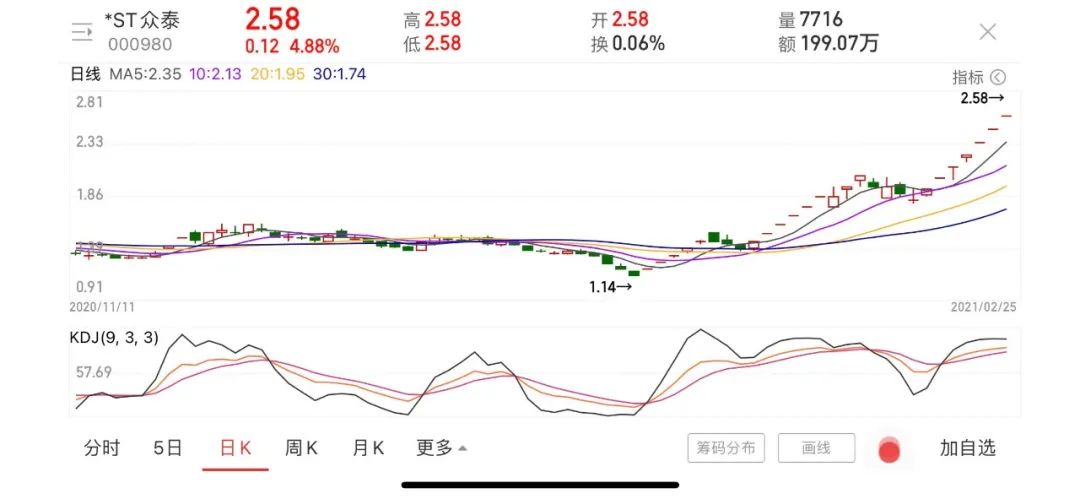 2月25日,*ST众泰(下称“众泰汽车”)再度一字涨停,报收2.58元,总市值也突破50亿达到52.31亿元,创下了去年3月12日以来的新高。