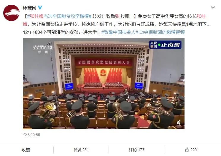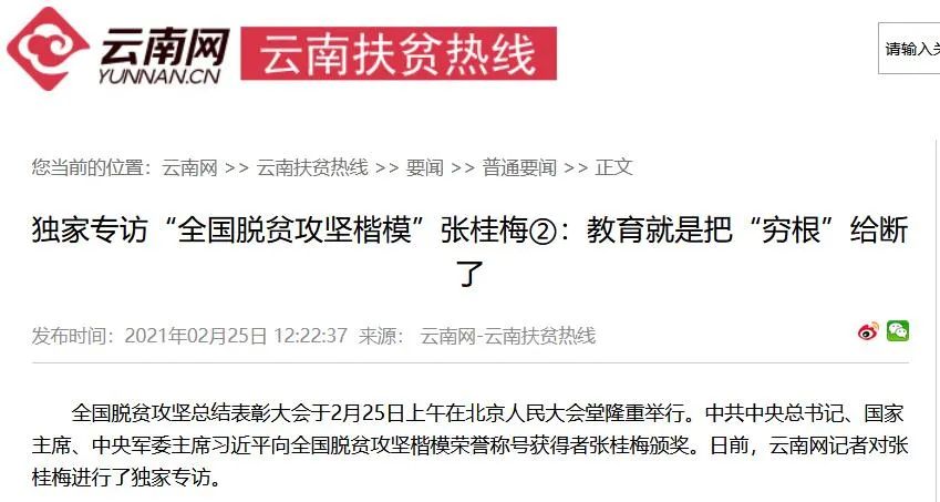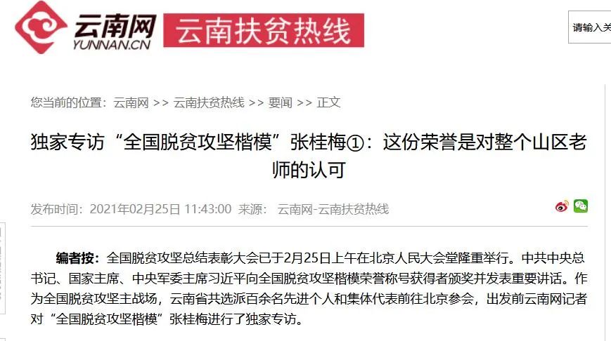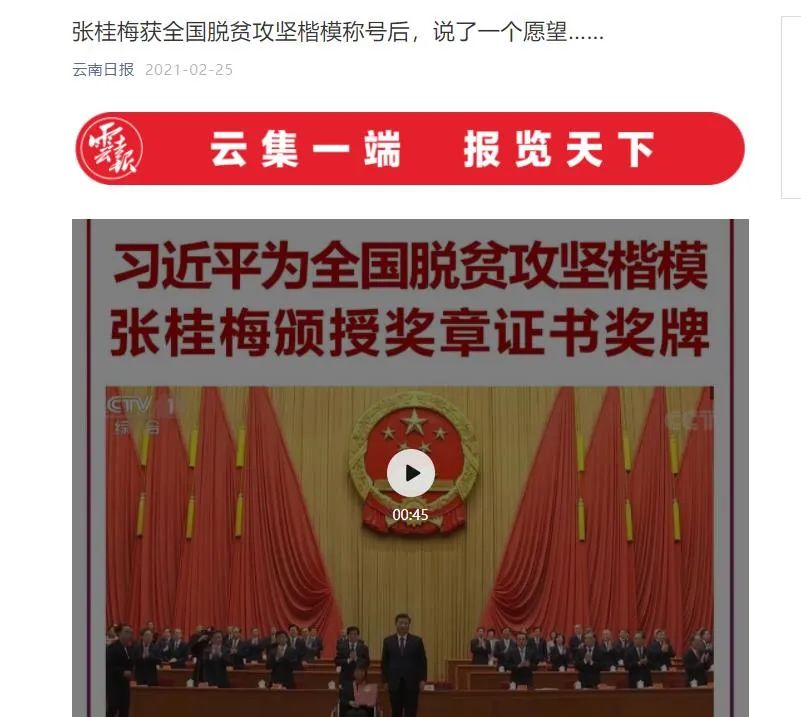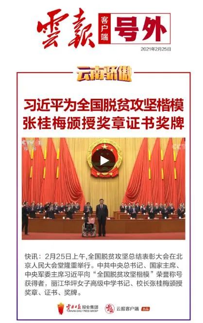 • 张桂梅上榜!全国脱贫攻坚总结表彰党中央、国务院荣誉称号拟表彰对象正在公示• 她,是“燃灯校长”,更是共产党员• 豁出命改变她们的命,值!《人民日报》点赞张桂梅:让教育之光照亮贫困山区• 这双贴满膏药的手,看一次哭一次……• 9天时间内跑遍104个学生家庭!《光明日报》报道张桂梅寒假家访• 张桂梅亲自下厨!这顿与孩子们的年夜饭一吃就是20年……内容综合自央视新闻、新华视点、北京日报、云南日报、云南网、云报客户端、春城晚报、掌上春城、昆明信息港、云岭先锋