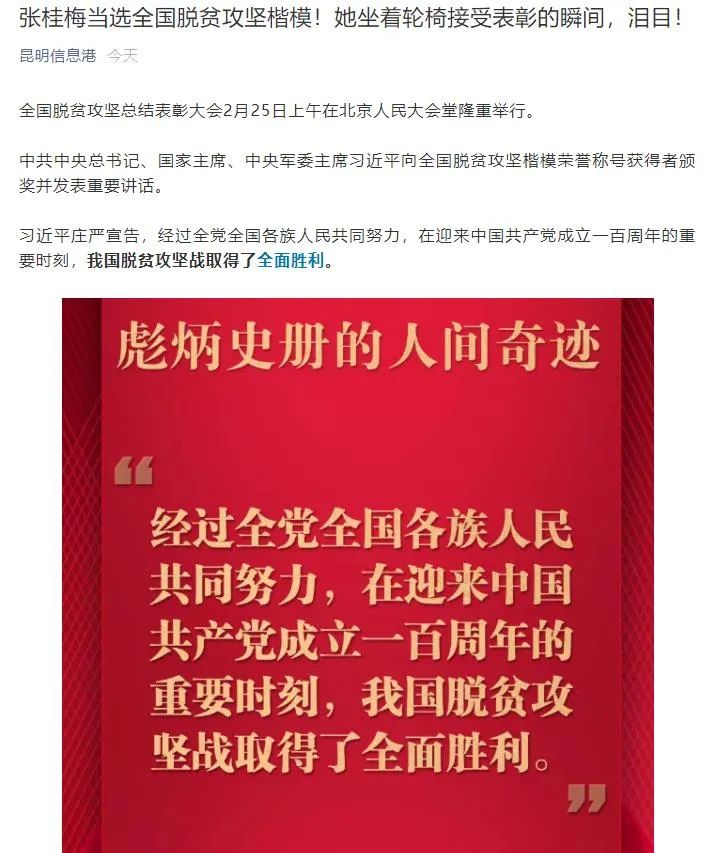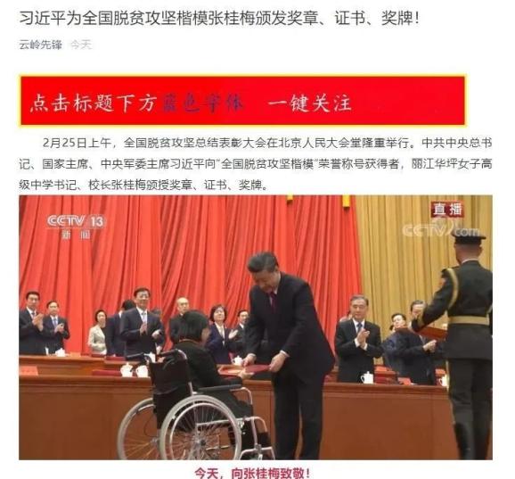 《习近平为全国脱贫攻坚楷模张桂梅颁发奖章、证书、奖牌!》一文后