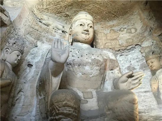 北魏时期佛教盛行,却在太武帝时期遭遇了一场空前的灭佛运动,史称“太武帝灭佛”。直到文成帝即位后,下令恢复了佛法,佛教才再次兴盛起来。这时,有一位名叫昙曜的僧人,复佛之后,就产生了使佛教能够永远流传的想法,不致于因一时的迫害而经像法物荡然无存,就提出了凿窟雕佛的建议,还迎合皇权把佛像雕成北魏皇帝的模样,以向世人宣扬“皇帝即如来”的思想。于是,文成帝便下诏“有司为石像,令如帝身”。这就是云冈开凿最早、气魄最宏大、帝王象征的昙曜五窟,揭开了云冈石窟开凿的序幕。