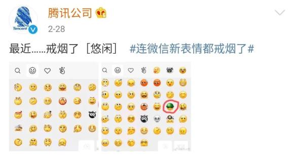 最近,腾讯公司通过其官方微博对外宣布:最近……戒烟了。随之下架微信“悠闲叼烟”的表情,取而代之的是一脸酷笑。