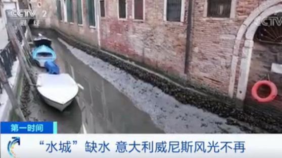 2)近期,意大利水城威尼斯水位大幅下降,出现了罕见的缺水现象,内陆河道多处干涸,贡多拉船纷纷搁浅。