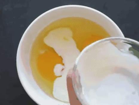 两个鸡蛋,加入一小碗牛奶和适量的糖,打匀