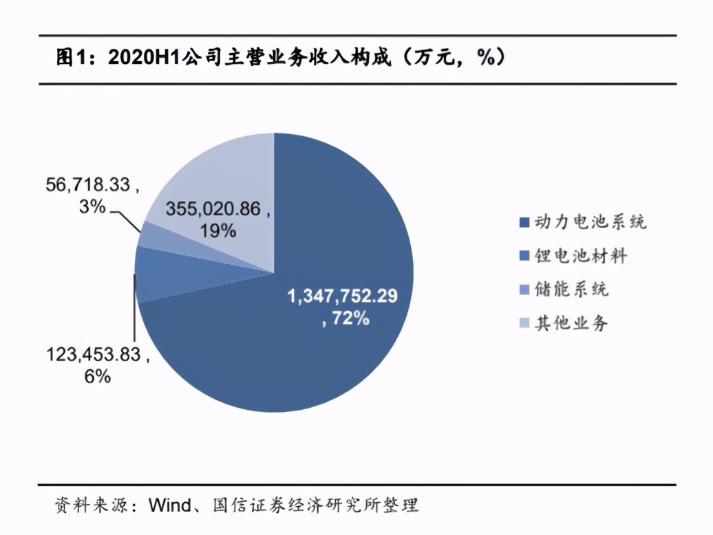 2020年上半年,动力电池系统为宁德时代贡献了约135亿元收入,在总营收中占比高达71.58%,是公司的支柱性业务。