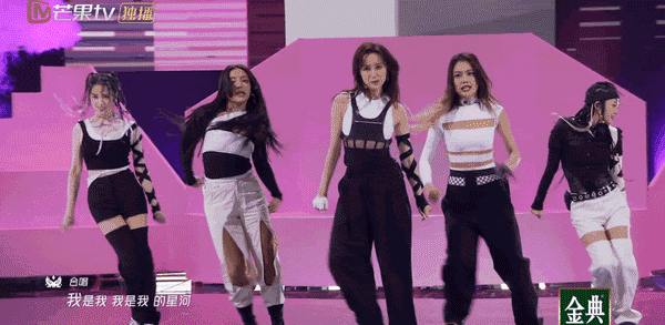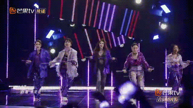 袁姗姗、李菲儿、陈妍希、贾青、蒋璐霞合作了“蛇团”的《SHERO》,走酷燃女战士风,有吊威亚这种空中杂技,地板舞动作设计很惊艳。