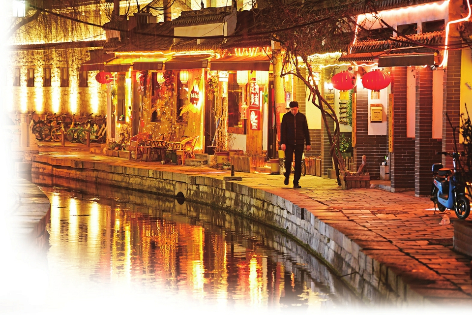 夜幕下的曲水亭街光影显得分外有韵味。