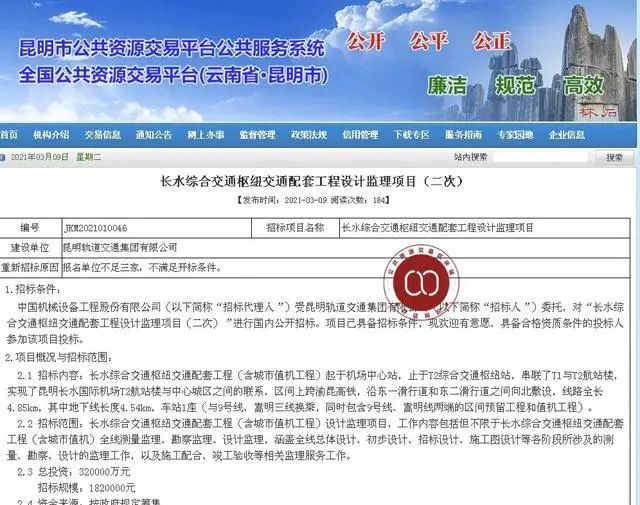 据了解,该项目原计划于3月1日开工,但因报名单位不足3家,不满足开标条件而进行二次招标。