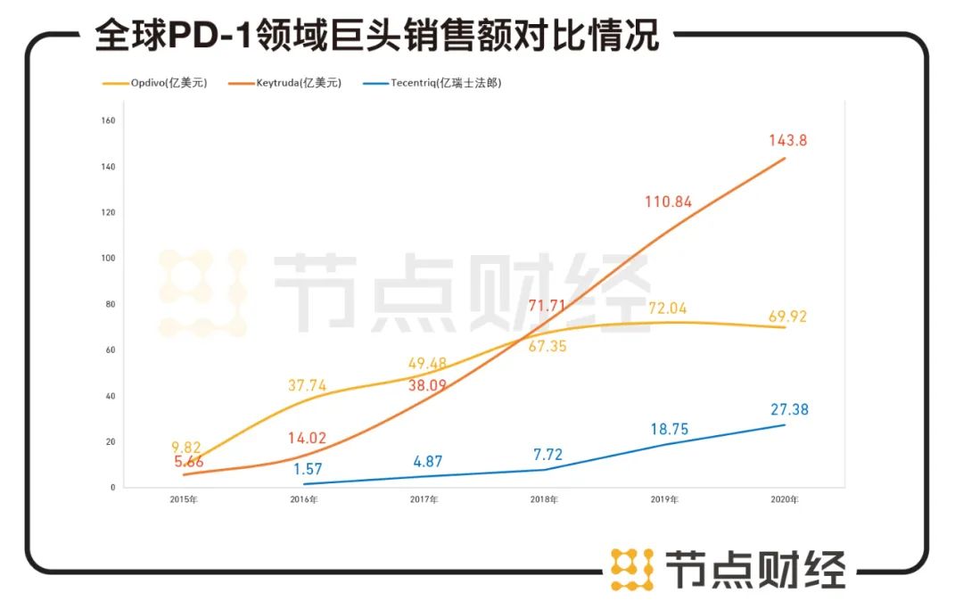那么,在未来的竞争中,四家企业谁有望在这千亿市场中拔得头筹?谁又将逆势而上?节点财经(ID:jiedian2018)将一一梳理各家PD-1公司的产品、适应症、销售能力等优势与短板。