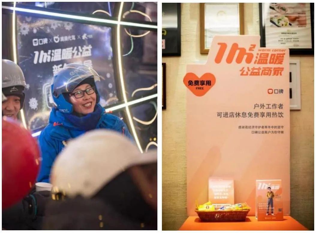 疫情期间,看到外卖骑手、代驾司机、快递小哥等户外工作者在寒冬中依然坚守在一线岗位,阿里本地生活事业部几名员工发起了“1 ㎡温暖”爱心驿站项目,联系本地生活商家和品牌,在线下搭建爱心驿站,为户外工作者提供一平米的爱心空间,让他们有一个地方可以短暂休息,坐着喝口热水,或者给手机充会儿电。