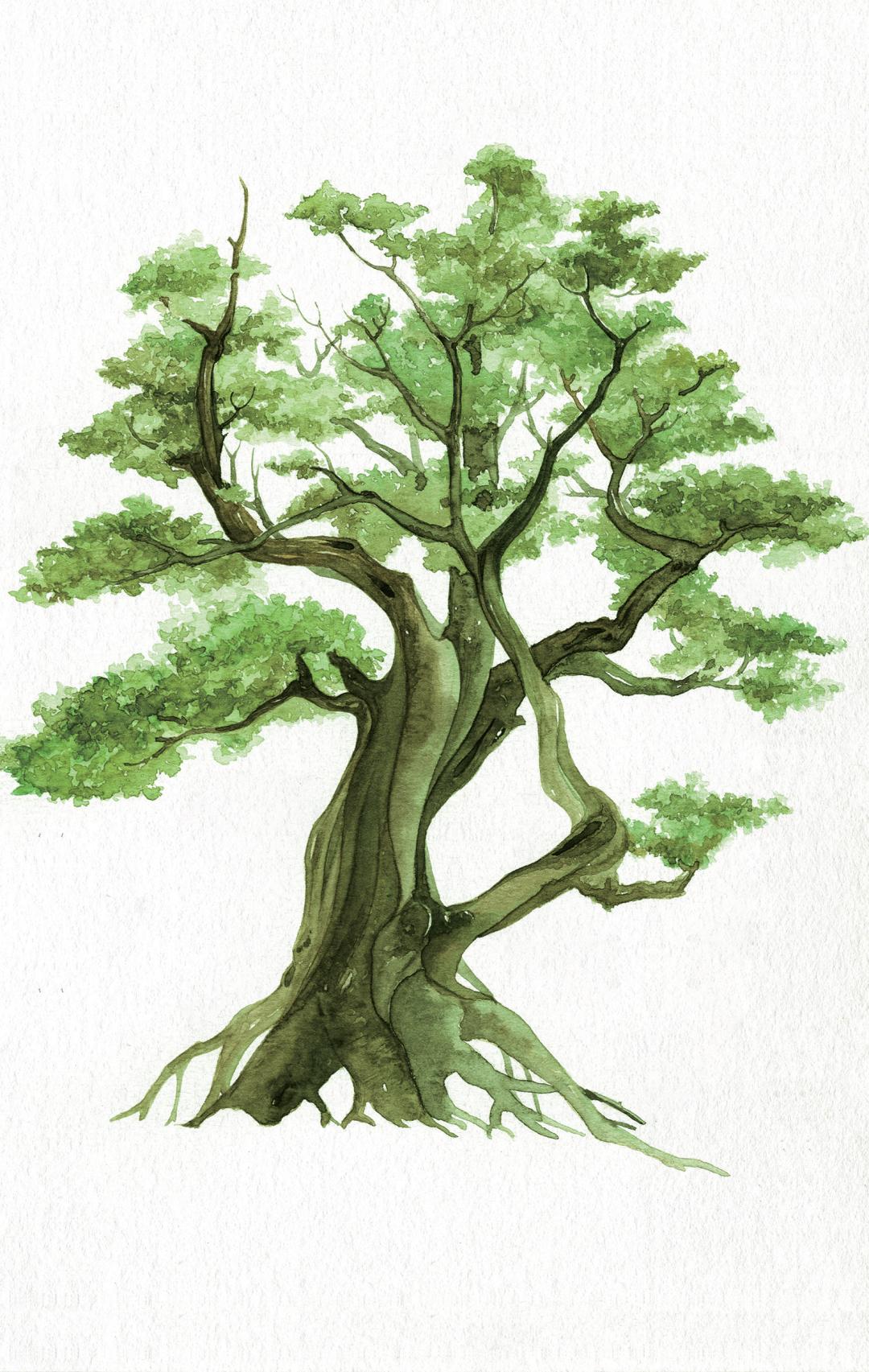 它的枝条繁茂,叶子细密,伸出藤条垂向地面,藤条末端进入泥土,就能生根。有的榕树主干极粗,有四五组根,树枝横生到旁边的树上,就交缠在一起。